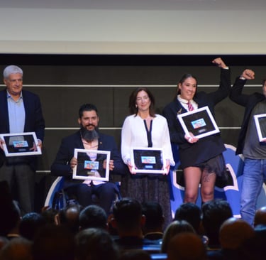 A LA IZQUIERDA LOS GANADORES DE ESTE AÑO, ABAJO PARTE DEL EQUIPO TÉCNICO